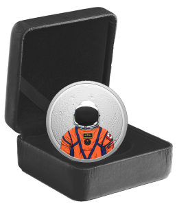 Designed by Canadian artist Pandora Young, the coin’s reverse illustrates Canada’s role in the international NASA-led Artemis II mission through its depiction of a CSA astronaut in a full Orion Crew Survival System (OCSS) spacesuit, backed by an enlarged engraving of the Moon. Selective colour brings the astronaut’s blue-trimmed, orange-coloured OCSS spacesuit to life, with a Royal Canadian Air Force badge displayed above a CSA patch in the centre of the chest panel. The Canadian flag is also visible on the left shoulder. When viewed under black light, the Moon glows, while the iconic view of planet Earth from the Moon is reflected in the astronaut’s visor. The obverse features the effigy of His Majesty King Charles III by Canadian artist Steven Rosati.